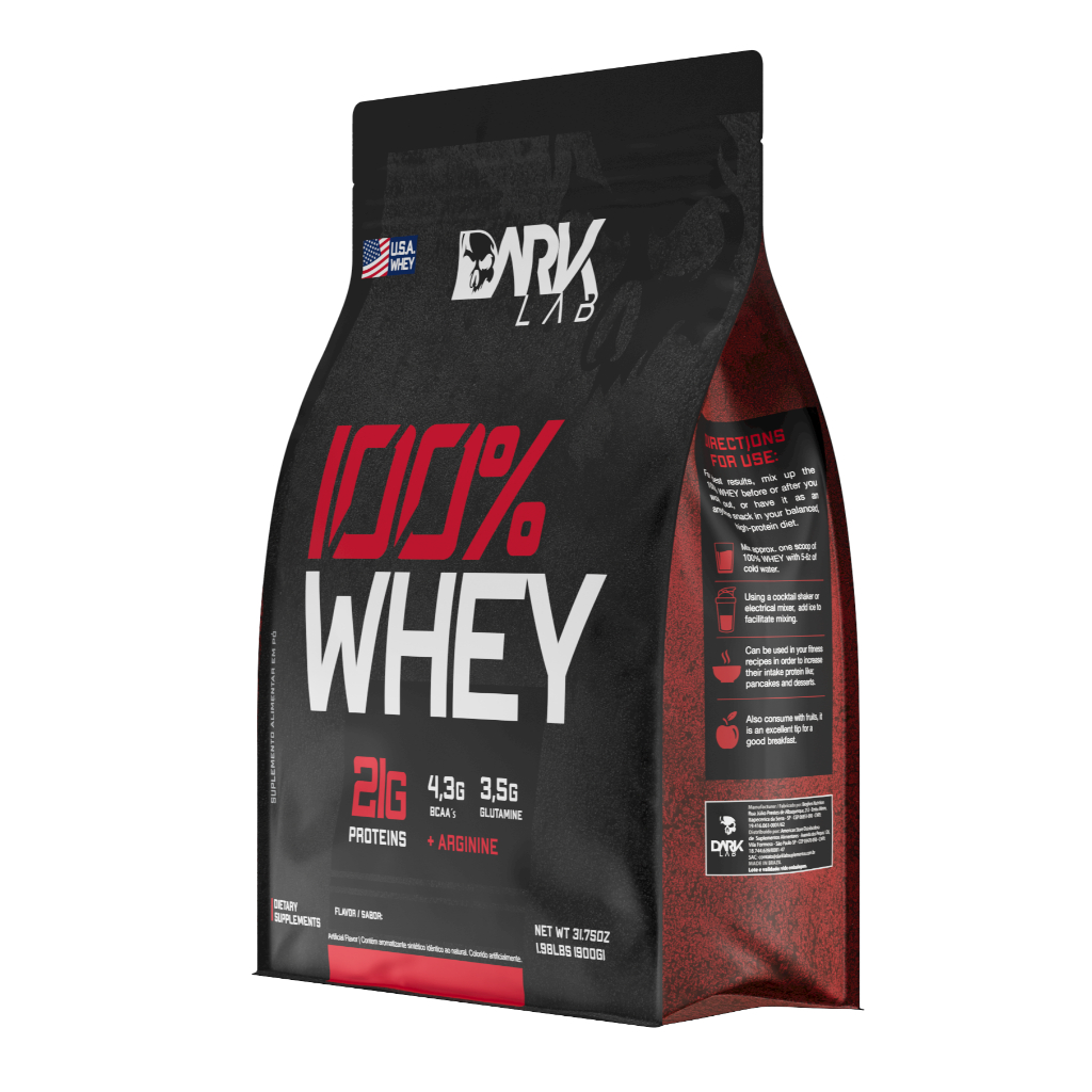 Whey Protein 100% Concentrado Refil 900g Dark Lab – Ganho de Massa, Recuperação e Alta Proteína