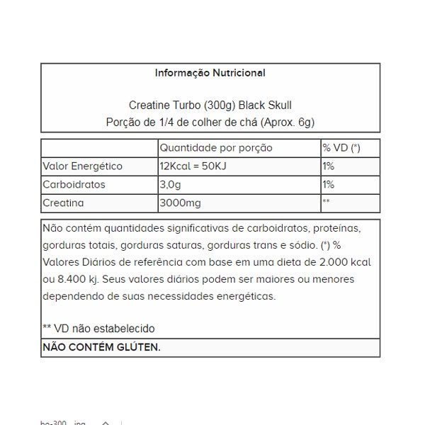 A Creatina Turbo Black Skull foi desenvolvida para potencializar o efeito da creatina, unindo Creatina Monohidratada + Maltodextrina, facilitando a absorção e aumentando os níveis de energia durante o treino.
