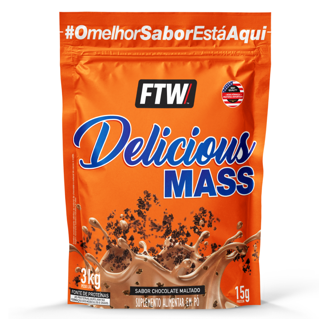 O Delicious Mass 3kg é um suplemento hipercalórico desenvolvido para complementar dietas com maior aporte energético.