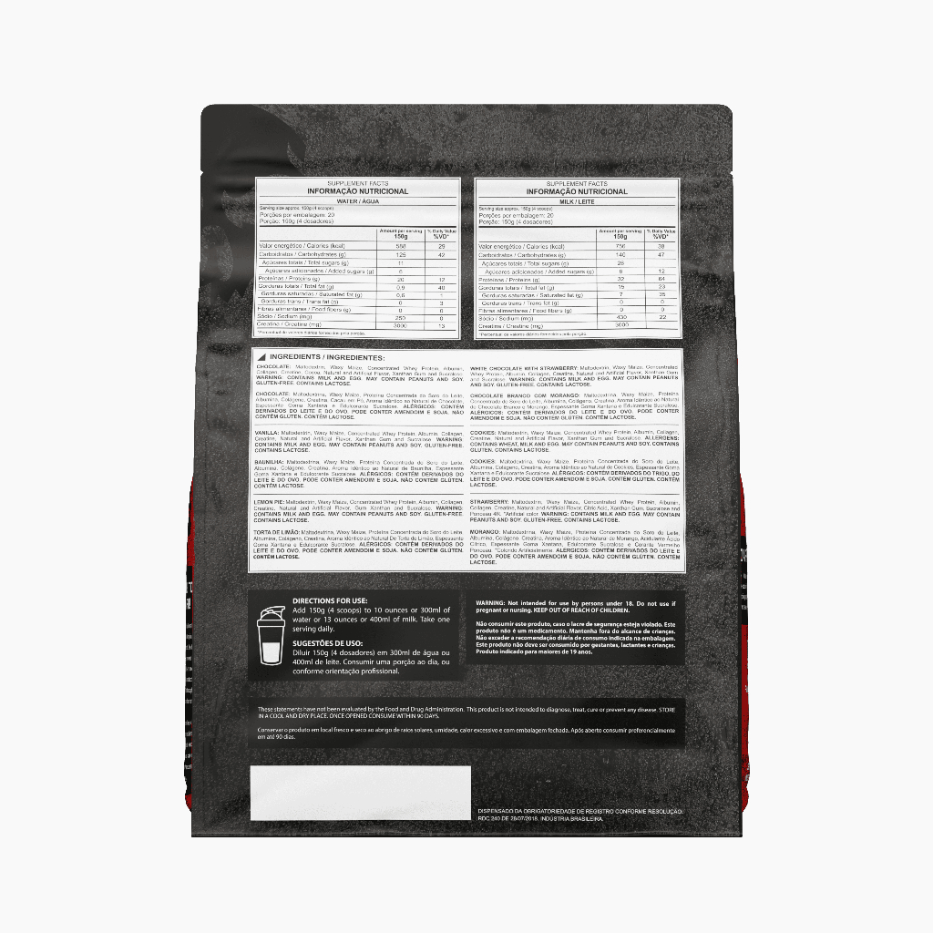 O Dark Mass é um hipercalórico desenvolvido para quem precisa elevar o consumo diário de calorias com qualidade.